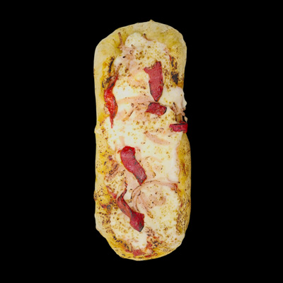 Masa elaborada a partir de harinas seleccionadas de alta calidad y masa madre. Con una maduración de 48hs en frío, estirada a mano y cocinada a temperaturas superiores a 350ºC.
